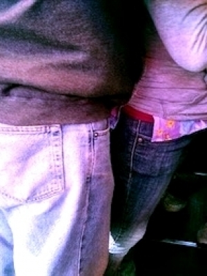 Me doy cuenta de que ese cuerpo se deja aplastar contra el mío, casi adaptándose a él. Noto algo más. Noto su sexo contra mi cachete derecho del culo. Está blando, pero lo noto perfectamente. Una pequeña excitación se mueve por mi cuerpo. Con cada frenazo, los cuerpos se mueven como un todo con pequeñas variantes y la presión del cuerpo que tengo detrás fluctúa. Mi calzoncillo ya ha llegado al final del culo y noto la tela del pantalón directamente contra mi piel.